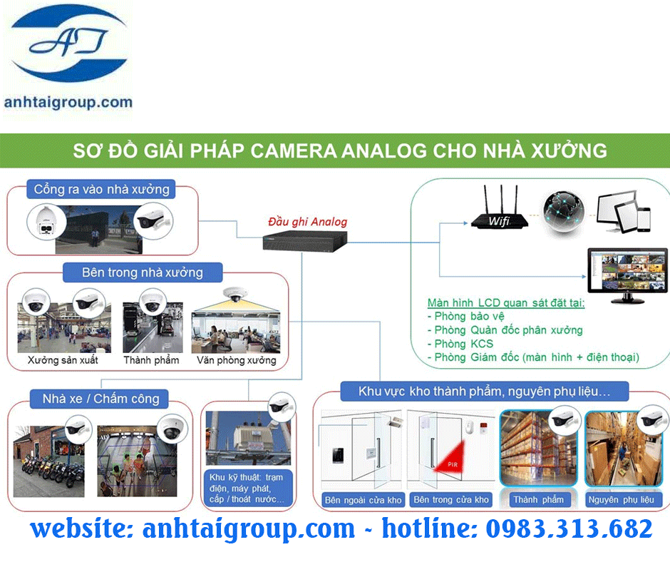 - Sử dụng dòng camera thân dài gắn tại các góc xưởng. Với tính năng chống ngược sáng tốt.